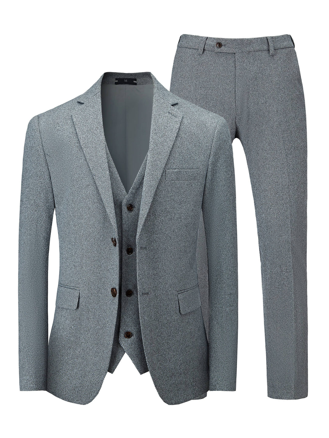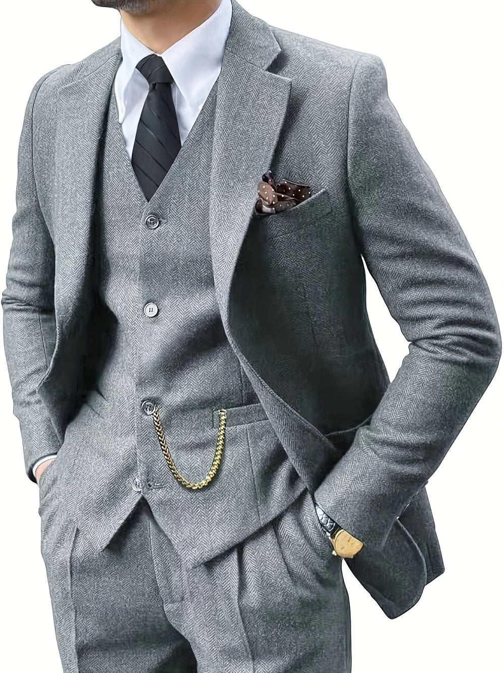 Trevian | Men’s Three-Piece Suit featuring a herringbone pattern